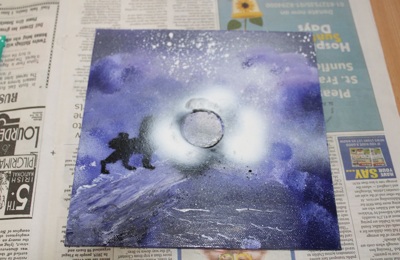 The group had fantastic weather for day one of the workshop and they walked out the back looking like trainee employees at a crime scene with their white overalls, gloves, masks and shoe covers. The first day involved creating & cutting stencils, learning techniques, experimenting with colours & textures and creating the most amazing solar system. When Hernán initially showed them what they would be doing I think they thought he was joking, but he wasn’t. The learners could not believe their eyes when they saw their pieces coming together and the mixture of shock and pride at the final piece was brilliant.