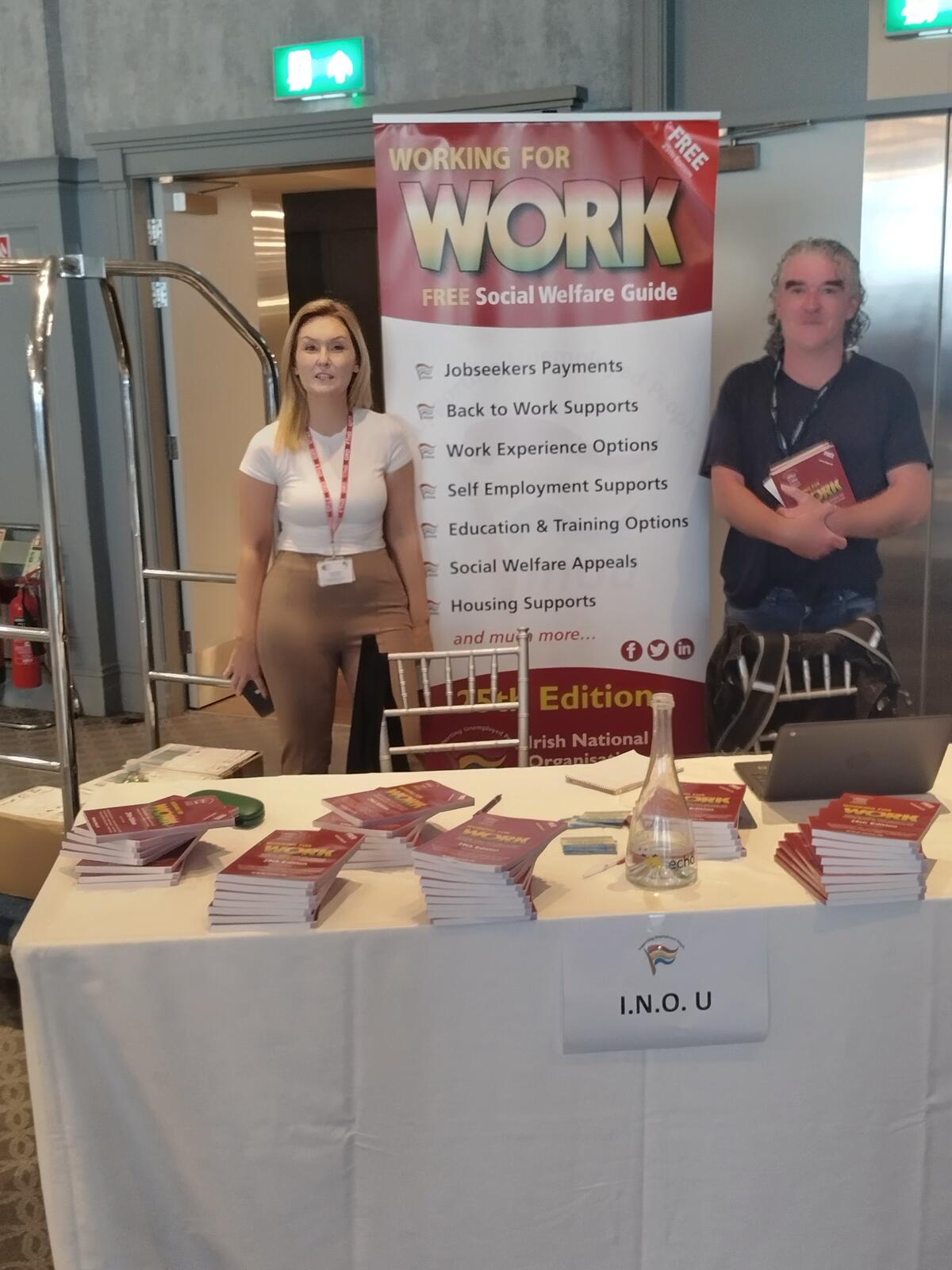 Attended on the day by Robbie and Gerry the event was extremely busy with a large number of queries presented to the INOU stand ranging from appeals to work and education supports and everything in between. We were kept busy throughout the day and some of the contacts have been ongoing since. We brought along a large number of copies of Working For Work and handed out all of them. The event was very well attended and organized.